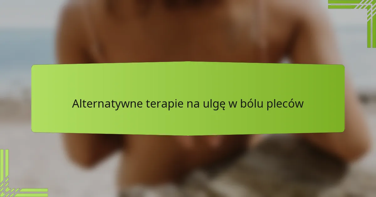 Jakie są najskuteczniejsze alternatywne terapie na ból pleców?