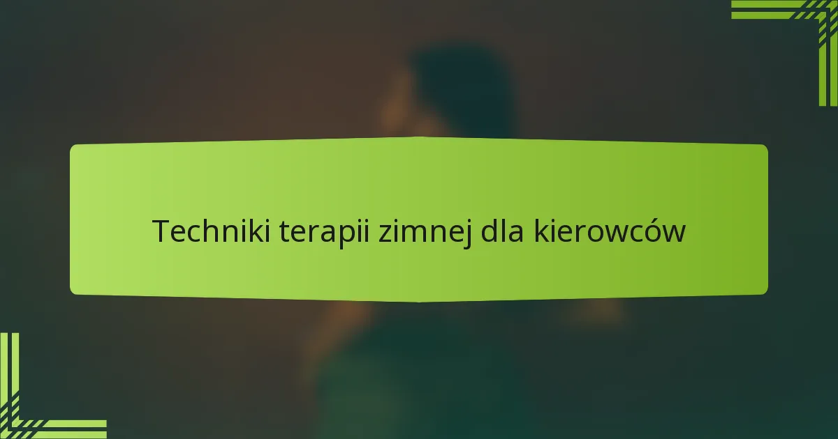 Jakie techniki terapii zimnem są najskuteczniejsze dla kierowców?
